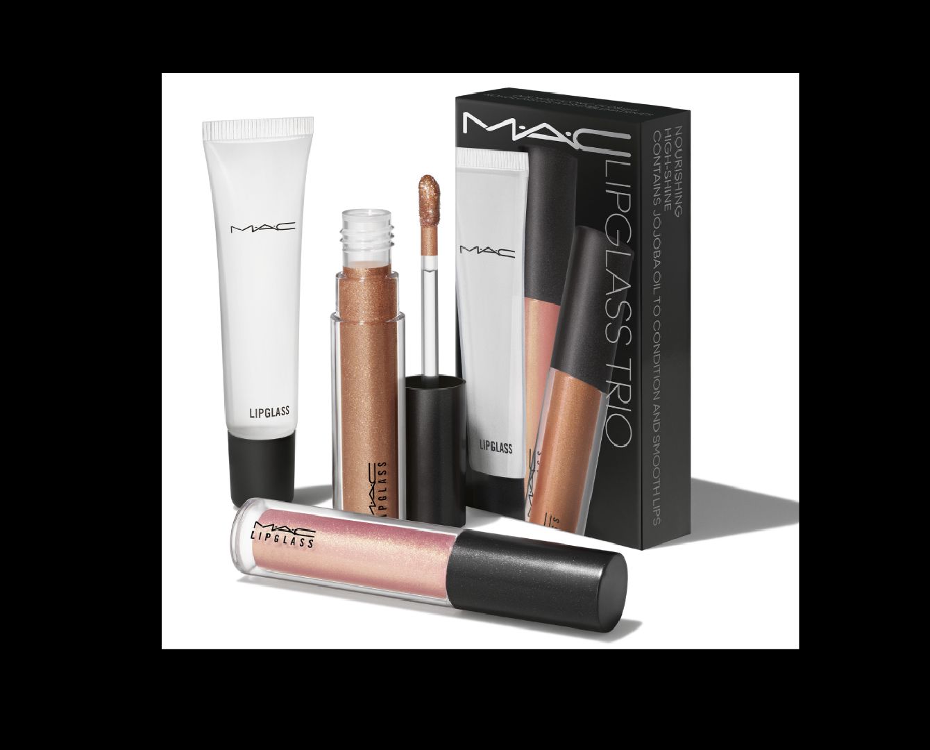 This set features Lipglass Oh Baby, a golden bronze with sparkling